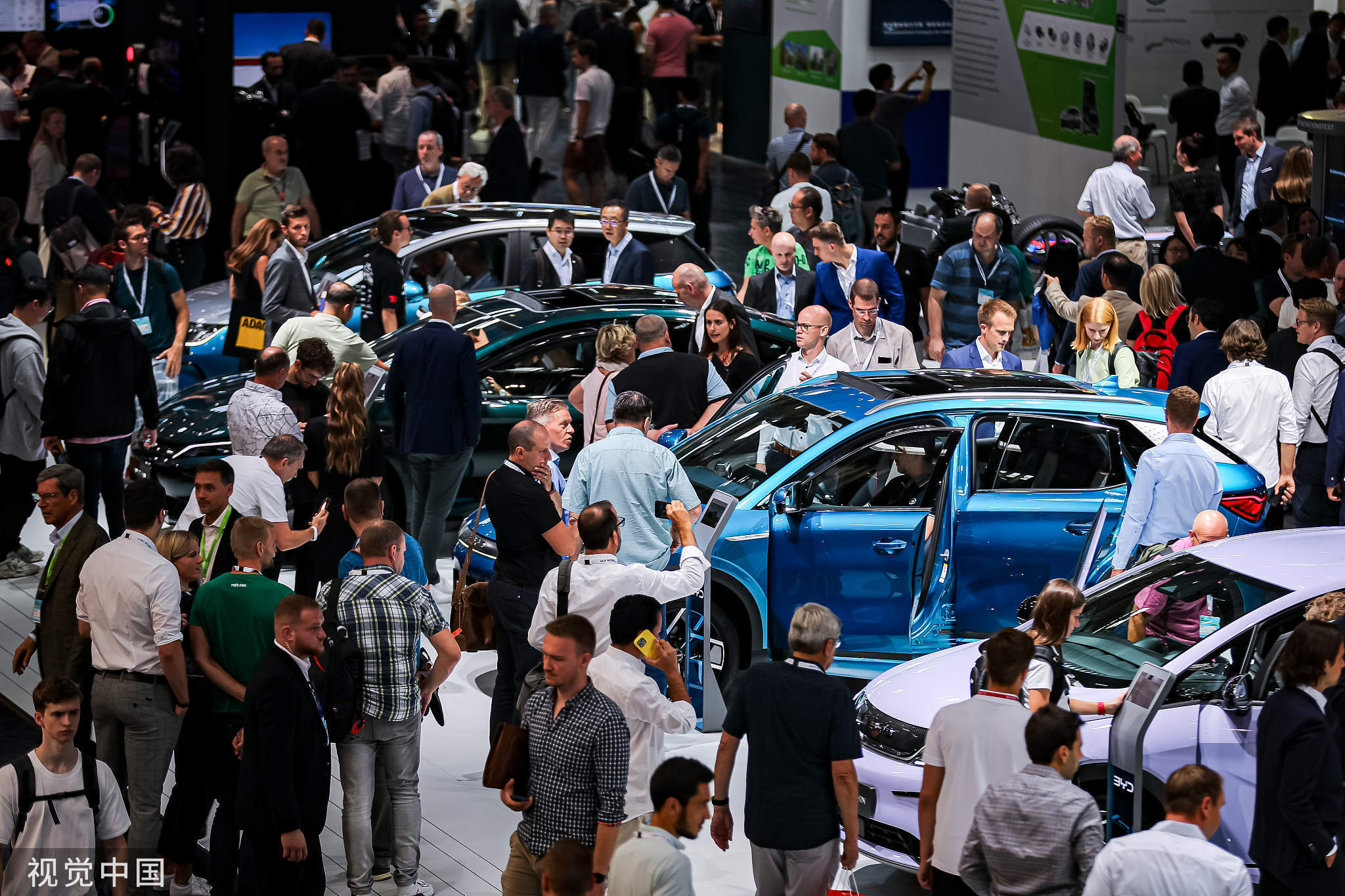 2023年9月,中國電動汽車亮相2023慕尼黑車展,展台前人山人海。(視覺中國)