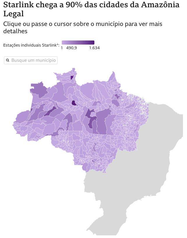 星鏈在巴西北部地區的市場佔有率。圖片來源:巴西國家電信局