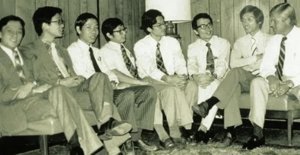 1974年,台灣團隊赴美簽署《集成電路技術轉讓授權協議》,這其中就有後來的“聯電”董事長,曹興誠(左一)