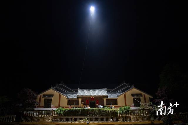 會來到晚上10時多,懸停在空中的無人機出現了故障,隨後指揮部裏的救援隊員將手機手電筒打開,繼續開會。張玉華介紹了村裏幾處臨時安置點,安排救援隊伍明日將物資送到受災羣眾手中。