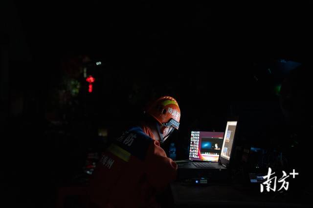 晚上7時左右,幾位救援隊員守在屏幕前,參與了省市縣應急部門舉行的調度會議,聽取了上級的工作部署,介紹了大新村的災情和救援情況。