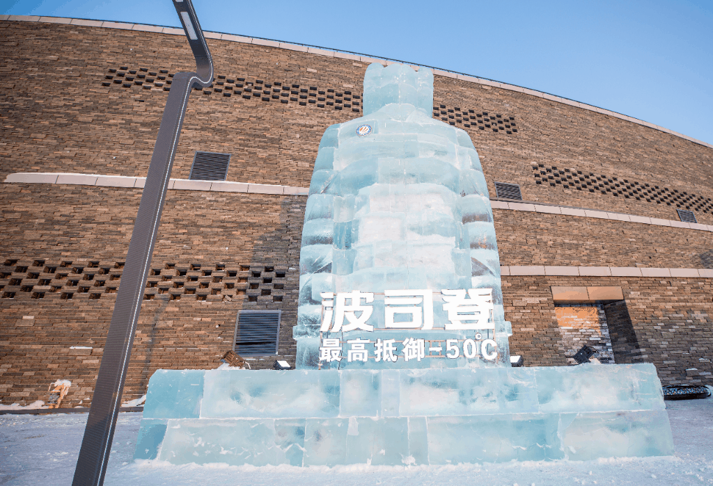 波司登巨型冰雕亮相哈爾濱冰雪大世界