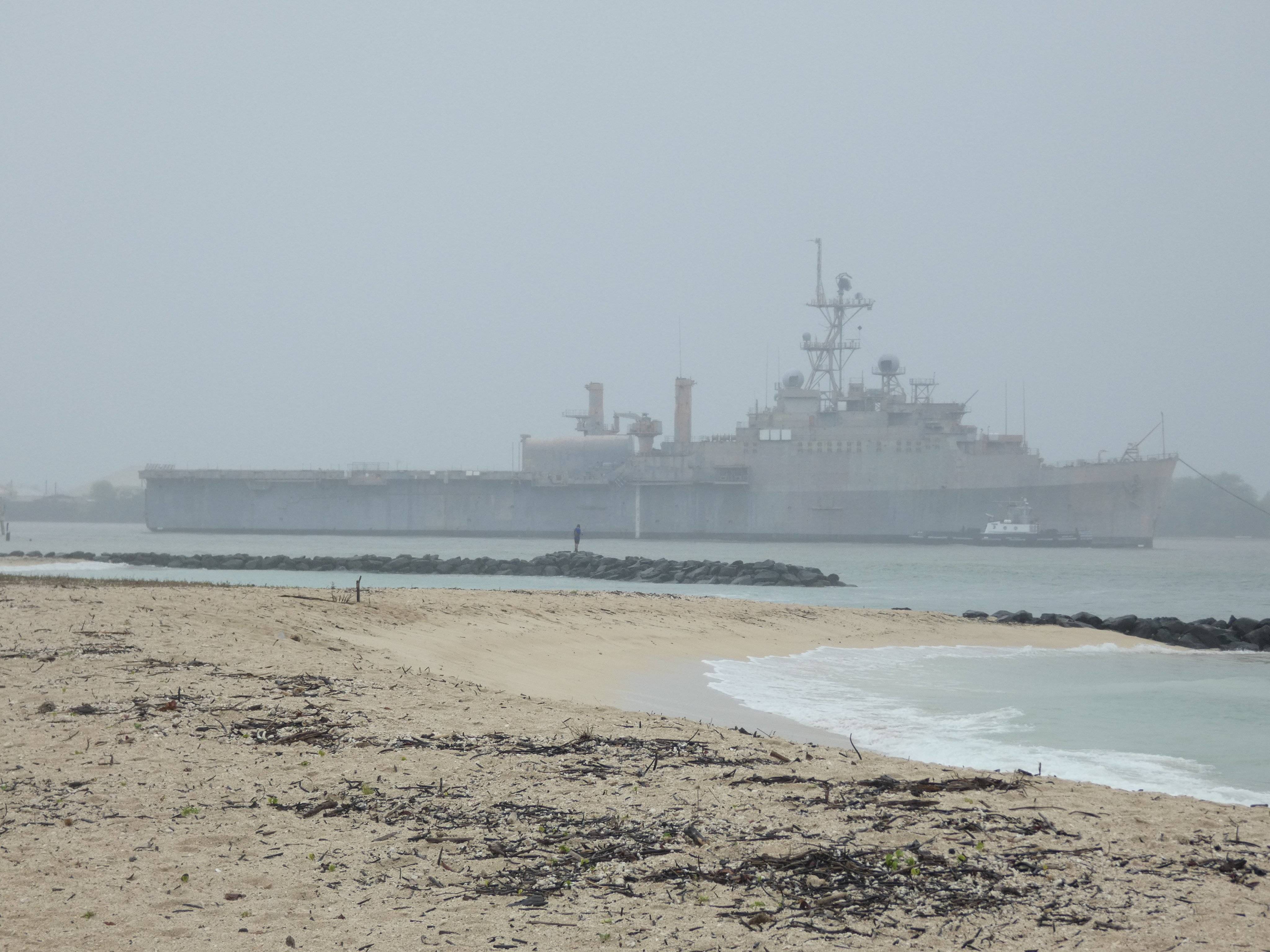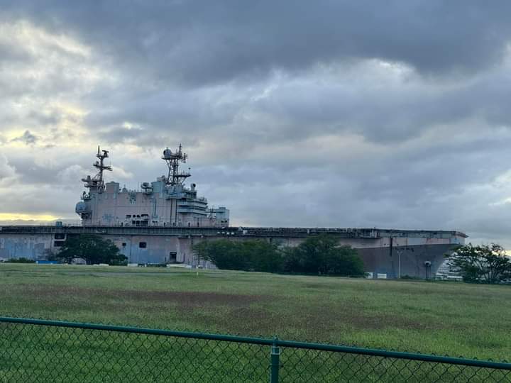 上月底,“塔拉瓦”號被拖至珍珠港內福特島停泊,進行靶艦前的準備 圖片來源:社交媒體