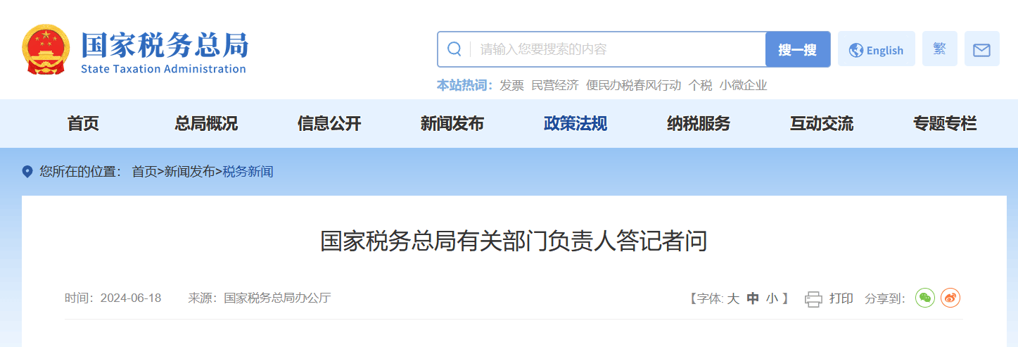 據國家税務總局網站6月18日消息,國家税務總局有關部門負責人答記者問 。