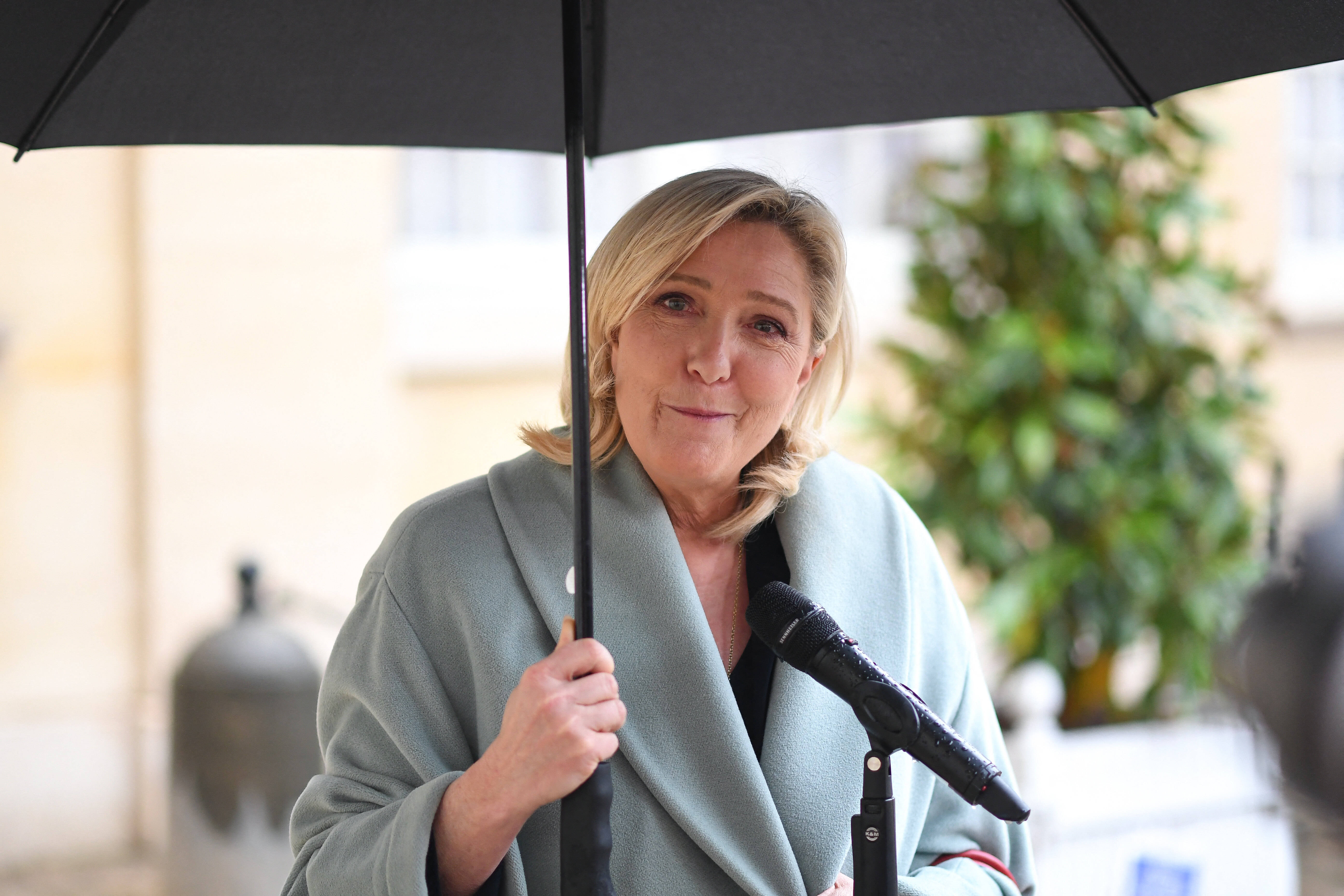 “國民聯盟”領袖勒龐。她日前在接受採訪時表示,若贏得法國提前舉行的國民議會選舉,她將不會試圖“推翻總統馬克龍”。(澎湃影像)