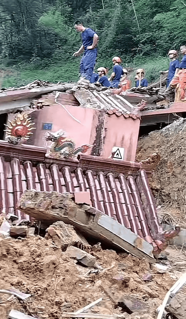 福建上杭山體滑坡一寺廟倒塌,一家6口為躲雨被埋失聯