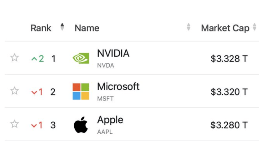 3.335萬億美元!英偉達一舉超越微軟、蘋果,成全球市值最高公司