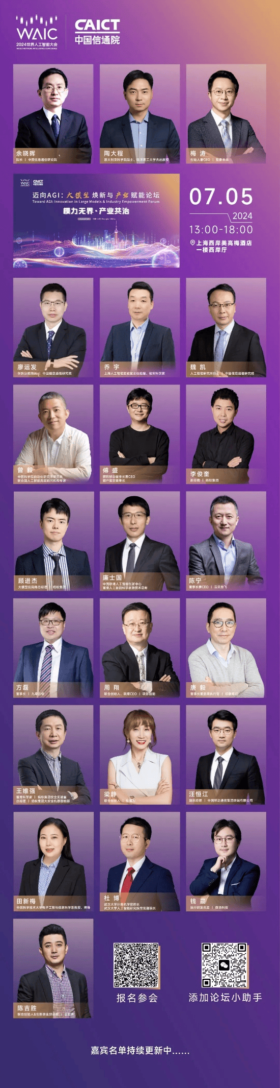 據微信公眾號“世界人工智能大會”消息,2024世界人工智能大會暨人工智能全球治理高級別會議(簡稱“WAIC 2024”)將於7月在上海世博中心、世博展覽館舉行。論壇時間7月4日-6日,展覽時間7月4日-7日。7月5日,中國信息通信研究院承辦的WAIC 2024 “邁向AGI:大模型煥新與產業賦能”論壇,將於上海徐匯西岸拉開帷幕!
