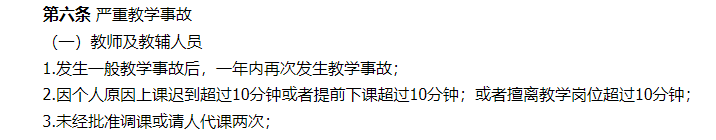 某校“嚴重教學事故”認定標準(有刪節),學校真的對俞老師“寬大”了