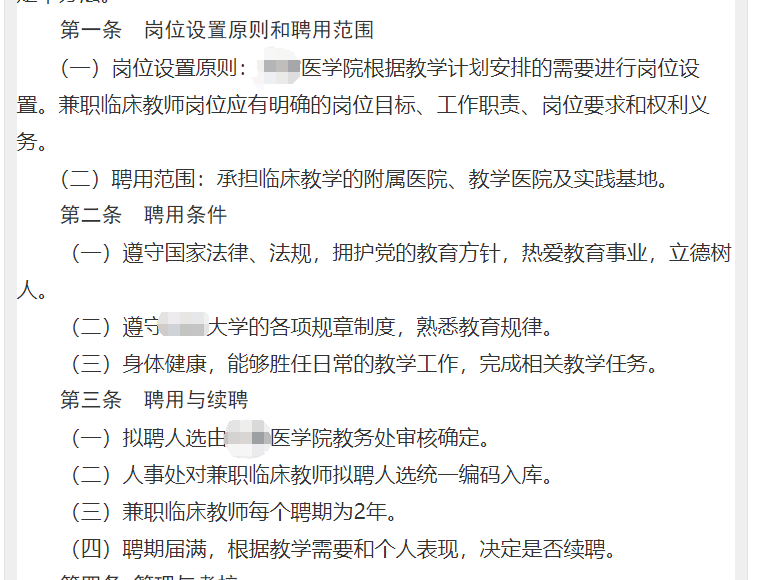某所高校的兼職臨牀教師聘用條件