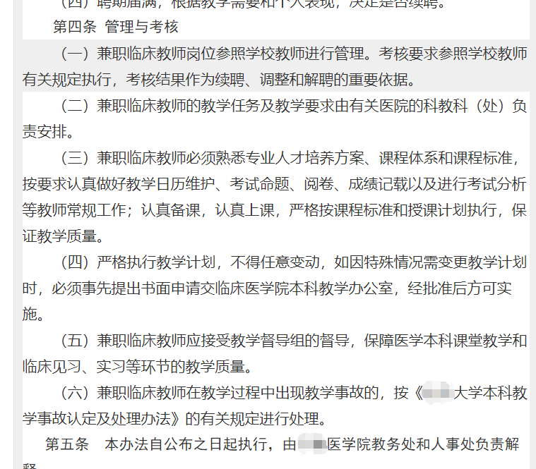某所高校的兼職臨牀教師考核管理規定
