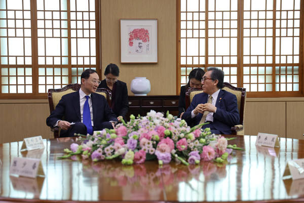 雙方重申重視和發展中韓睦鄰友好與互利合作,同意積極開展各層級各領域對話交流,通過外交部門高級別戰略對話、外交安全2+2對話、1.5軌對話等機制性對話加強溝通,提升政治互信,促進務實合作,推動中韓戰略合作伙伴關係健康穩定發展。雙方同意加強地方、青年等交流,持續改善兩國國民友好感情。中方就台灣等涉及中國核心利益和重大關切的問題表明嚴正立場,要求韓方妥善處理。韓方重申尊重一箇中國原則的立場沒有變化。