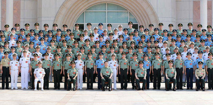 6月17日至19日,中央軍委政治工作會議在陝西延安召開。中共中央總書記、國家主席、中央軍委主席習近平出席會議並發表重要講話。這是17日下午,習近平親切接見會議全體代表。新華社記者 李剛 攝