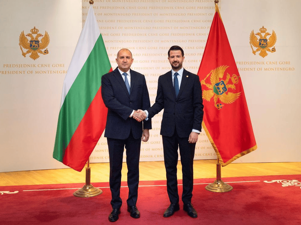 黑山總統米拉托維奇(右)與到訪的保加利亞總統拉德夫握手(保加利亞總統府網站)