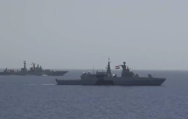 俄海軍與埃及海軍舉行聯合軍演畫面(視頻截圖)