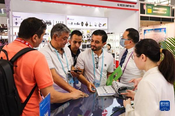 幾名來自哥倫比亞的採購商在廣交會上了解中國汽配產品 圖片來自新華社