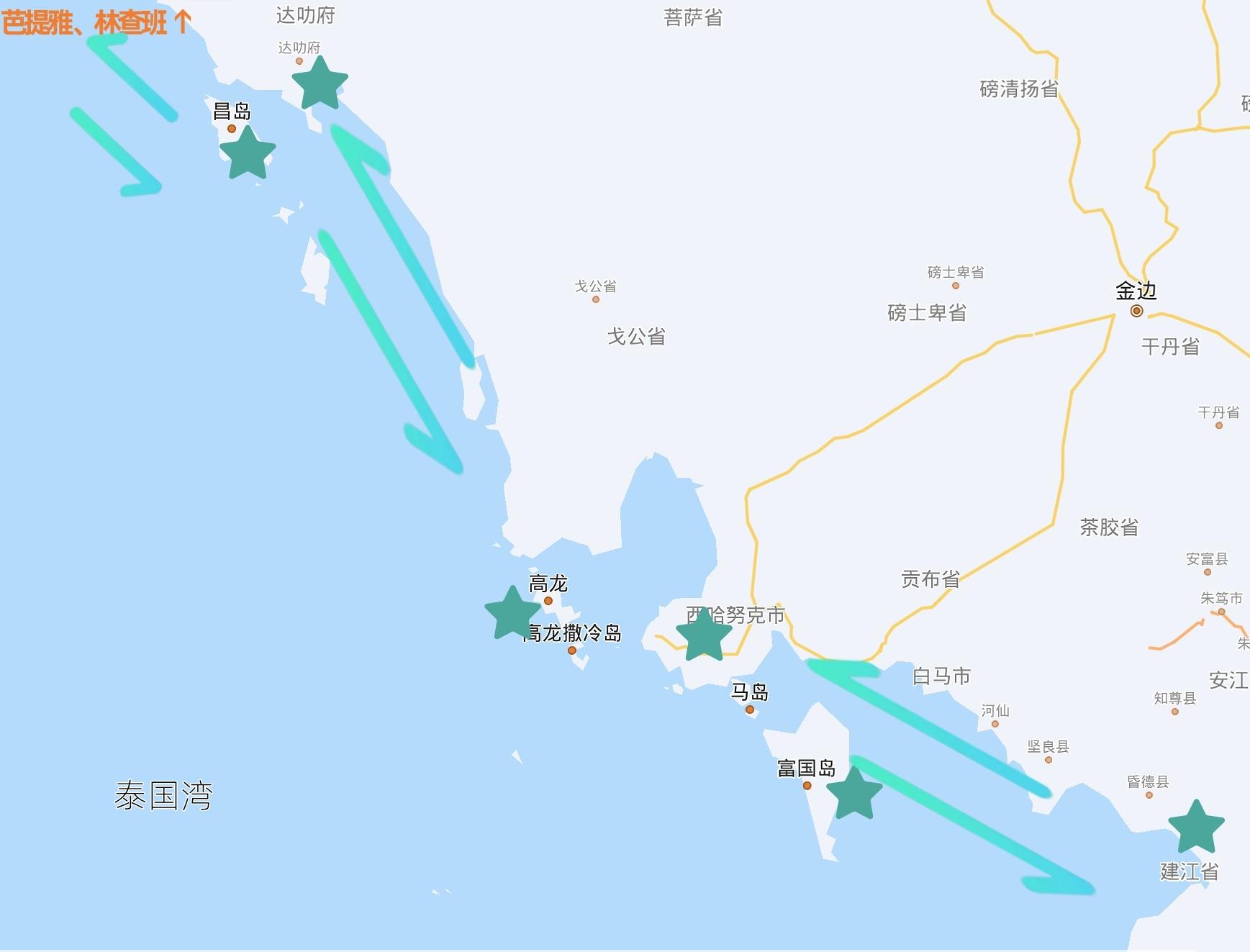 觀察者網搜索後發現,旅遊航線沿線地區位於中南半島西南部、泰國灣東岸,擁有豐富的旅遊資源——特別是越南堅江和柬埔寨西哈努克的旅遊產業分別在其國內處於優勢地位,此外,還分佈着象島(又名昌島)、西哈努克城、富國島等傳統旅遊目的地。如果中國遊客想感受這裏的海上風光,來一場説走就走的旅行也是可能的。目前,泰國對中國公民實施免籤政策,去柬埔寨短期旅遊可辦理落地籤,而越南富國島則對直接抵離的遊客給予免籤政策。