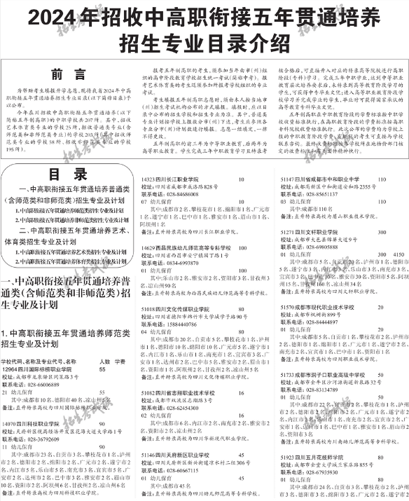 四川2024年五年貫通培養目錄 圖片來源:招生考試報