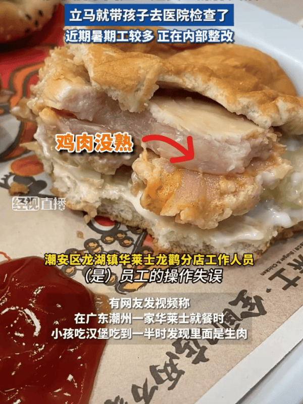 華萊士再爆食品安全問題,廣東一門店漢堡吃出生肉?