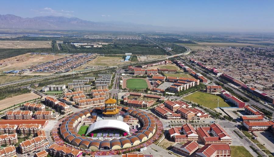 這是2022年9月7日拍攝的寧夏銀川市閩寧鎮(無人機照片)。新華社記者 馮開華 攝