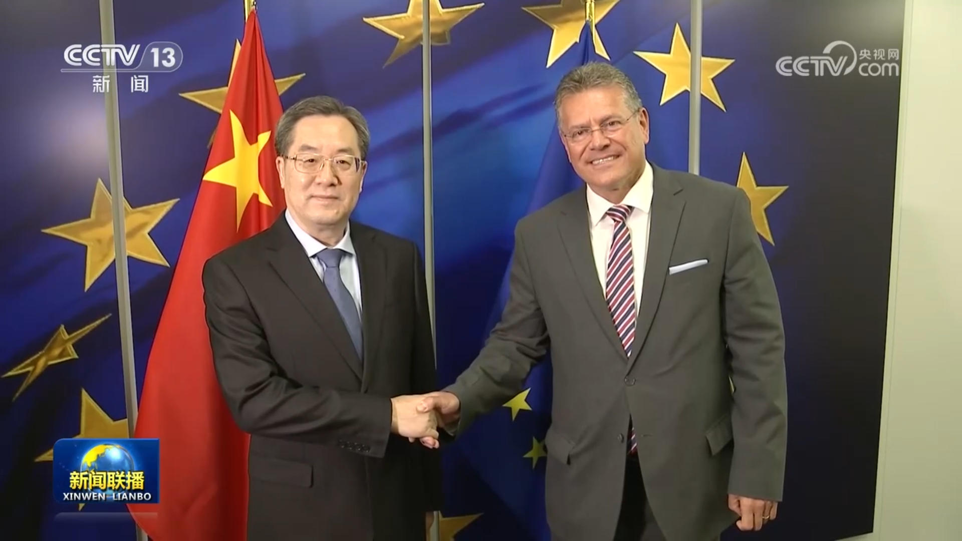 6月18日,中共中央政治局常委、國務院副總理丁薛祥在比利時布魯塞爾會見歐盟委員會執行副主席謝夫喬維奇,共同舉行第五次中歐環境與氣候高層對話。