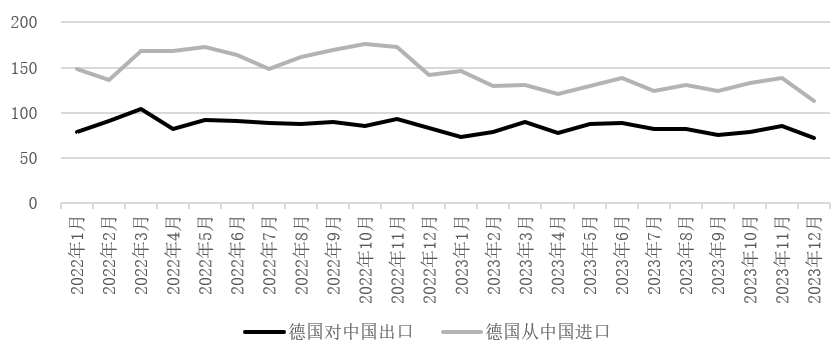 中德貿易額(按月,單位:億歐元) 圖片來源:作者供圖