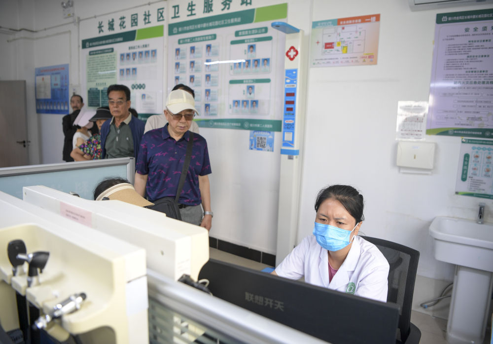 6月20日,長城花園社區衞生站的工作人員為居民登記醫療信息。