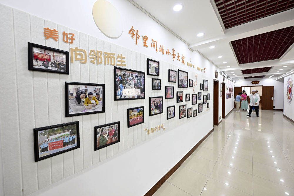 6月19日在長城花園社區黨羣服務中心拍攝的照片牆。