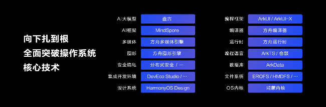 HarmonyOS NEXT由內而外,煥然一新,打造全棧自研的技術底座,從操作系統內核、文件系統,到編程語言、編譯器/運行時、編程框架,再到設計系統、集成開發環境,以及AI框架和大模型等等,實現了全棧自研。