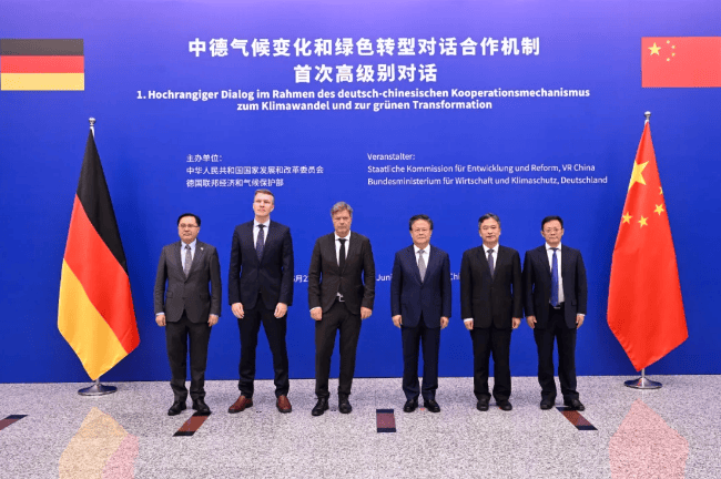 微信公眾號“國家發展改革委”消息,6月22日上午,國家發展改革委主任鄭柵潔在京會見德國聯邦副總理兼經濟和氣候保護部部長哈貝克,共同舉行中德氣候變化和綠色轉型對話合作機制首次高級別對話。中方國家發展改革委、外交部、工業和信息化部、生態環境部、交通運輸部、人民銀行、國家能源局,江蘇省、四川省以及國家節能中心代表,德方聯邦經濟和氣候保護部、外交部、環境部,德國聯邦議院、德國駐華使館,巴符州、北威州以及德國國際合作機構代表參加對話。
