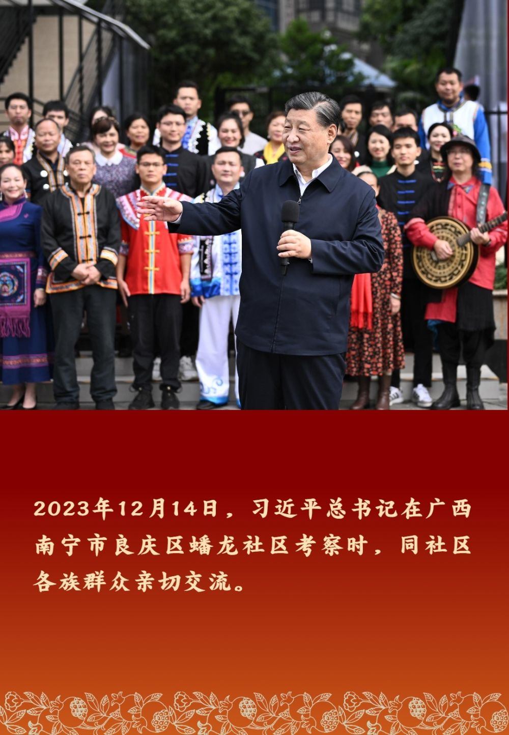 以習近平同志為核心的黨中央高度重視民族工作,十分關心少數民族羣眾。習近平總書記多次深入民族地區考察調研,同各族羣眾親切交流,勉勵大家鑄牢中華民族共同體意識,像石榴籽那樣緊緊抱在一起。