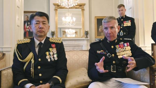 一同出席發佈會的日本陸上自衞隊的陸上幕僚長森下泰臣稱,將加強陸自和美國海軍陸戰隊的合作,推進印太地區的“和平穩定”。