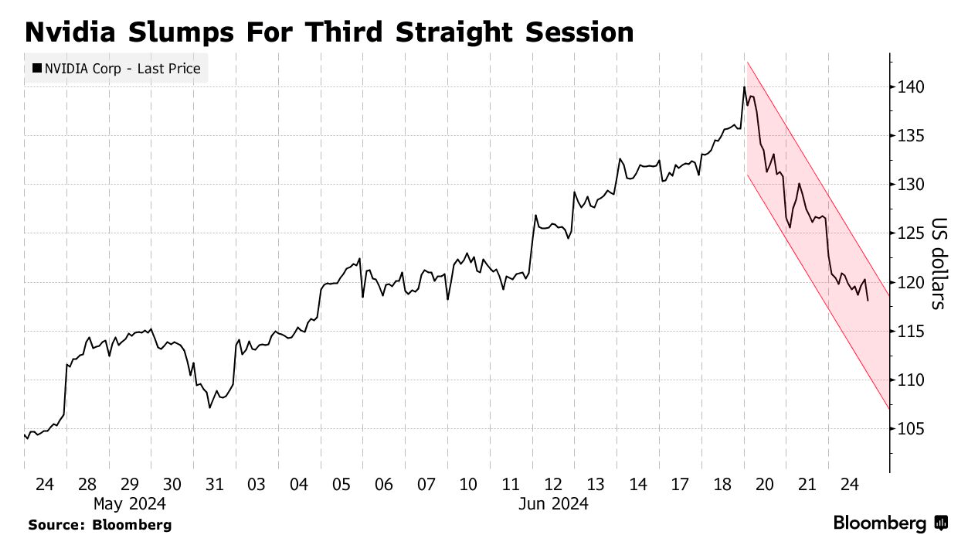 在上週短暫成為全球市值第一大公司後,英偉達迎來暴跌。