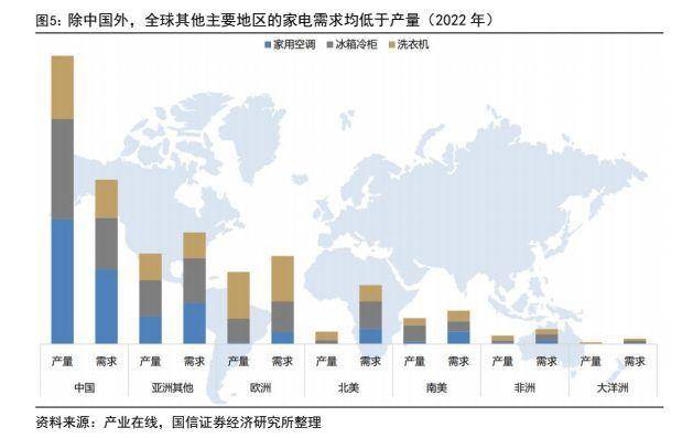 根據產業在線的數據,2023 年我國家用空調、冰箱、洗衣機、LCD電視內外銷量佔全球銷量的比重分別達到85.0%、55.6%、48.1%、72.4%。