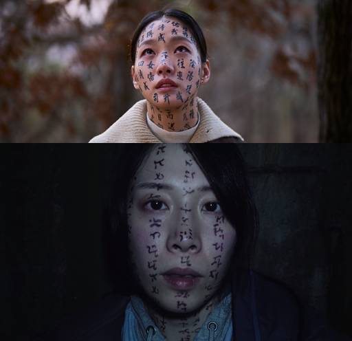 韓國電影《破墓》(上)與中國台灣電影《咒》(下)劇照對比