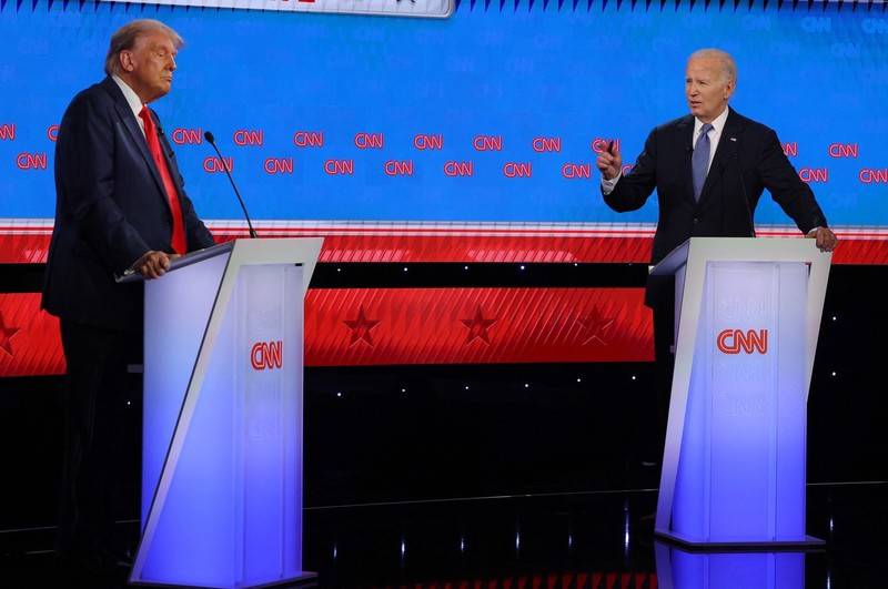 只要注意到這樣的細節,即這場辯論使用了“強制閉麥”原則,以避免令人尷尬的競爭性搶話環節就知道,CNN,這個“西方新聞傳播的燈塔”,對於這兩位總統候選人,能否遵循講話的基本禮儀,即聽對方把話説完,不要插嘴和搶答,是沒有什麼信心的。這番閉麥的操作之下,不管雙方提供的答案質量怎麼樣,至少從程序和現場秩序來看還是一場合格的總統候選人辯論。