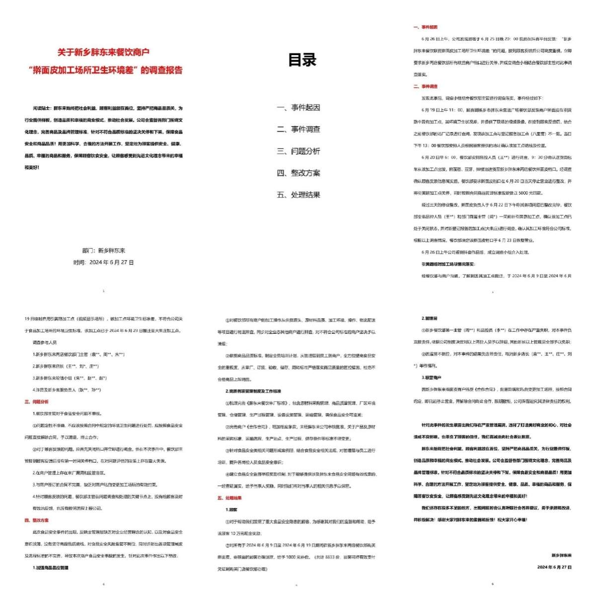 胖東來發布了一份關於“擀麪皮加工場所衞生環境差”的調查報告