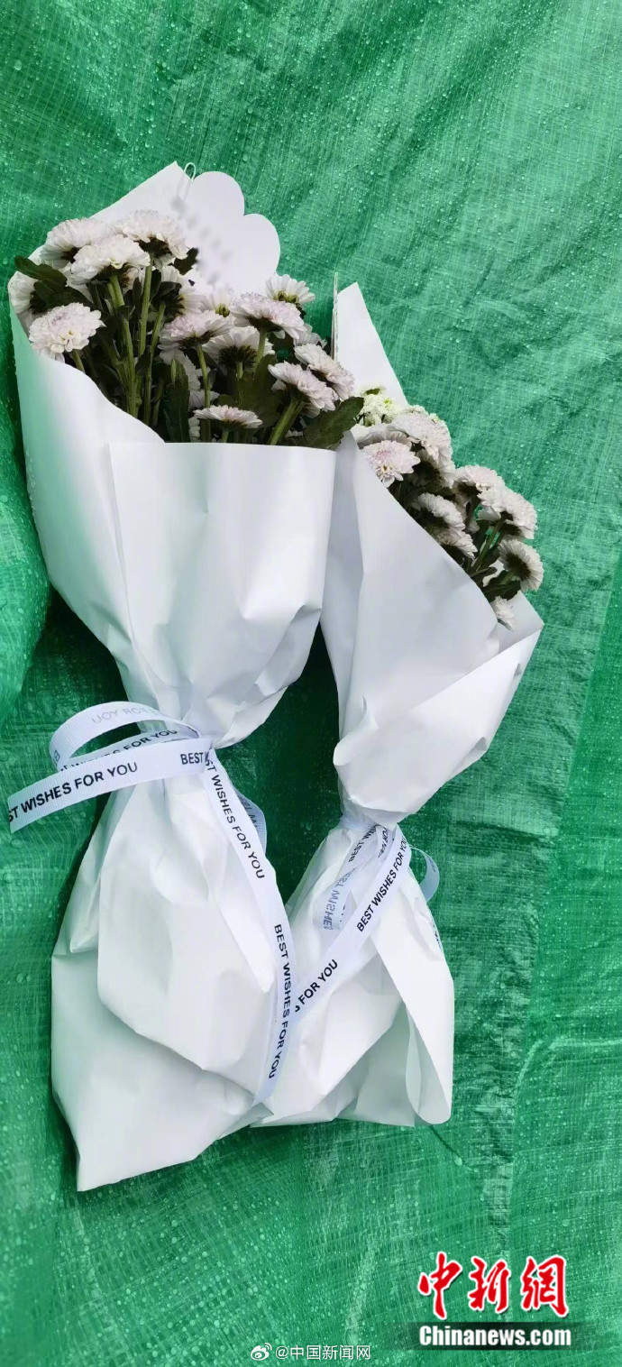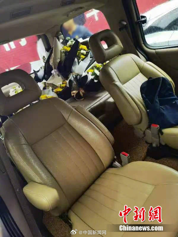 記者在現場看到,有市民到公交站台獻花,在工作人員引導下,把花拿到了附近停車場的一輛商務車中,車內後備箱已經有很多菊花。