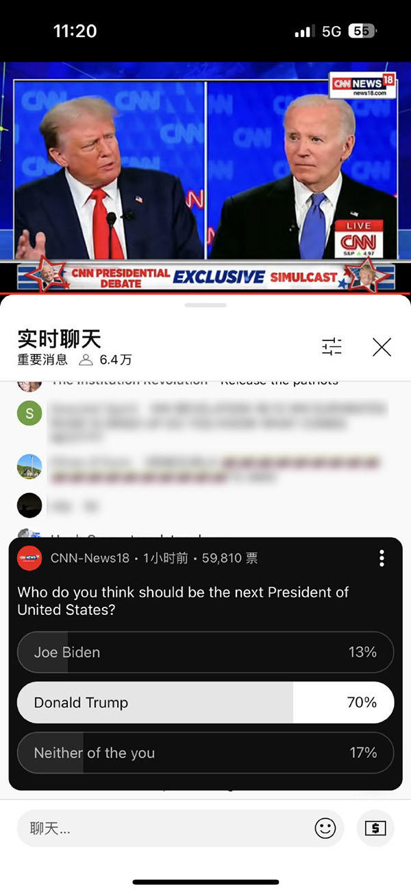 網上還流傳着一個説法,稱CNN發起的投票顯示,面對“誰應該當選下一任美國總統”的問題,70%的人選擇了特朗普,僅有13%的人選擇拜登,另有17%兩者都不選。