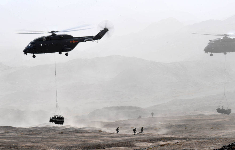 陸軍練兵備戰及轉型建設集訓中,某空中突擊旅進行實兵實彈演練(2018年5月23日攝)。 新華社記者 張永進 攝