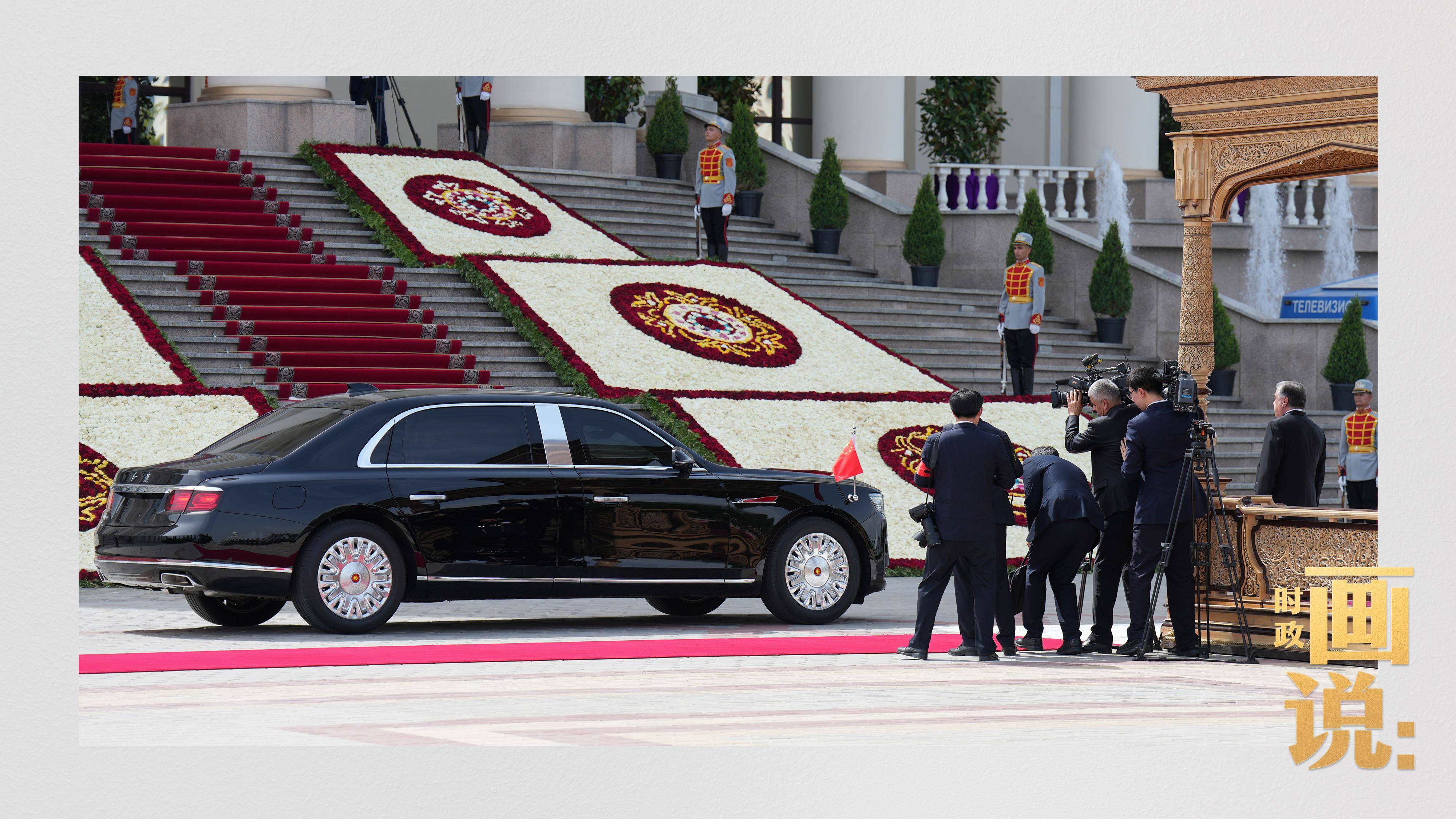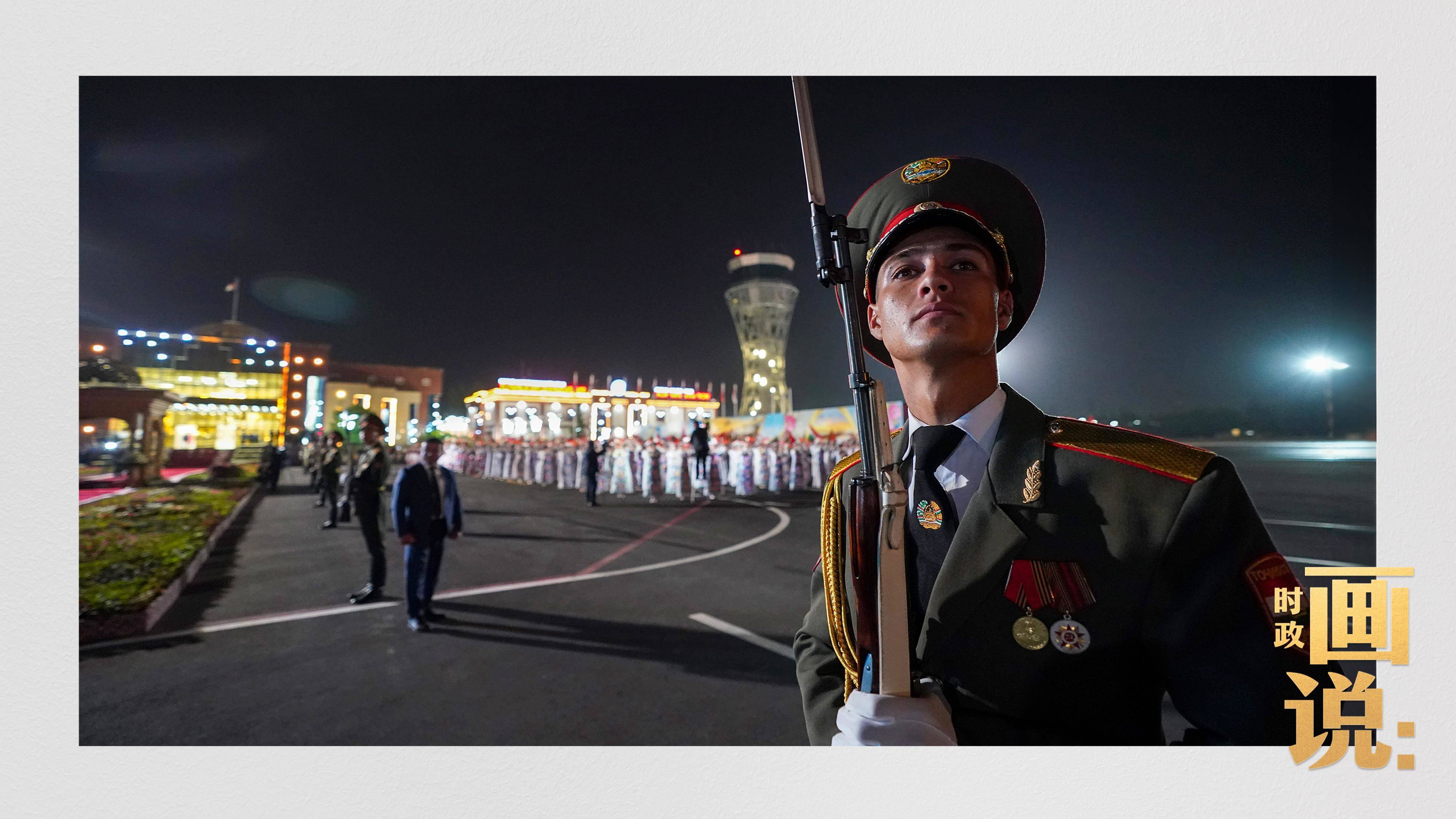 專機抵達杜尚別國際機場時,拉赫蒙總統率高級官員熱情迎接,並在機場為習近平主席舉行盛大隆重的迎賓儀式。當地時間5日下午,習近平主席在杜尚別總統府出席拉赫蒙總統舉行的隆重歡迎儀式。