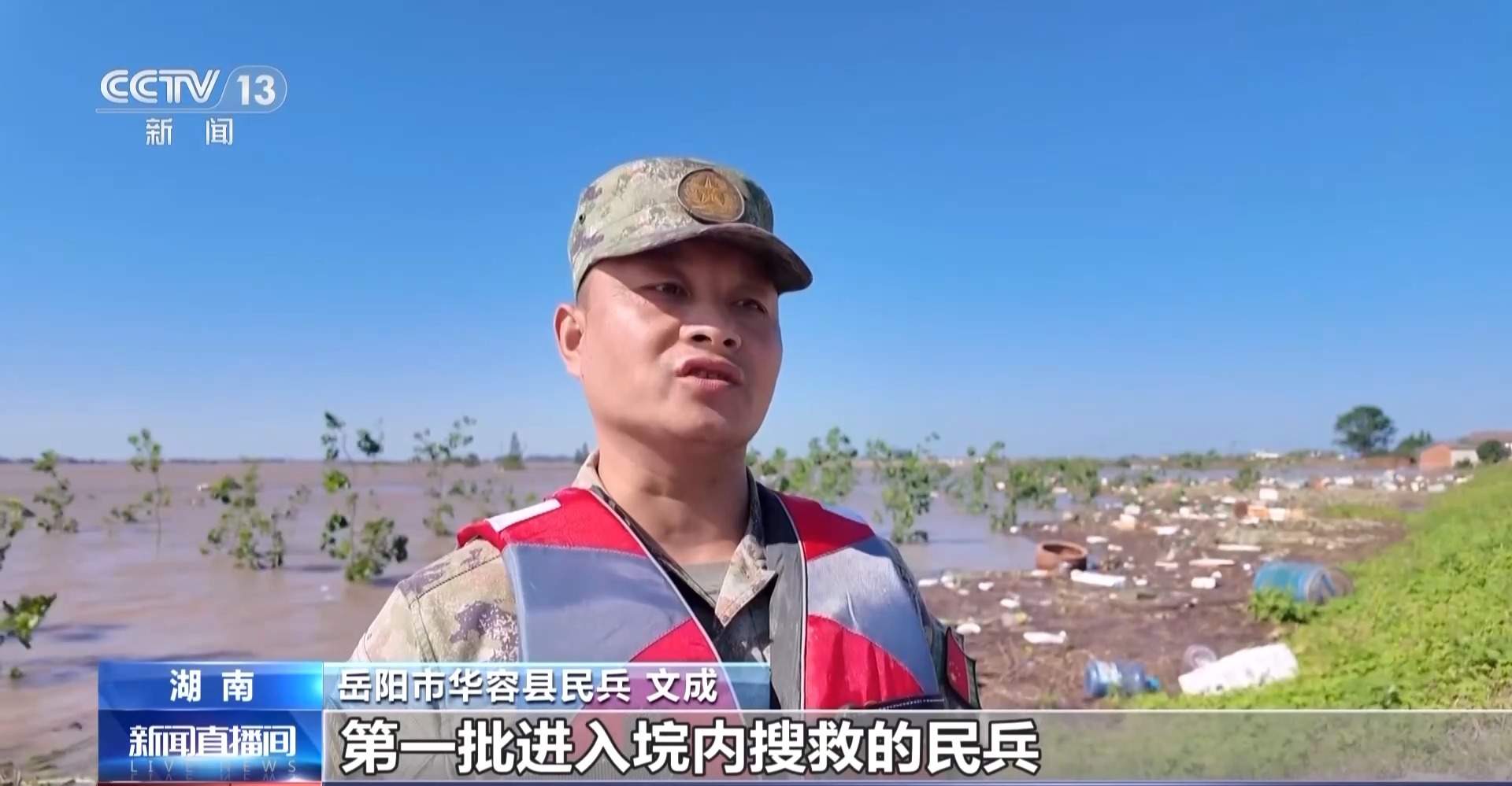 湖南省岳陽市華容縣民兵 文成:我們是昨天晚上第一批進入垸內搜救的民兵。從昨天晚上到今天早上,我們一共出動了7次,搜救轉移羣眾14名,剛剛我們又進行了“地毯式”搜索。目前,我身後這片區域,沒有再發現受困羣眾。