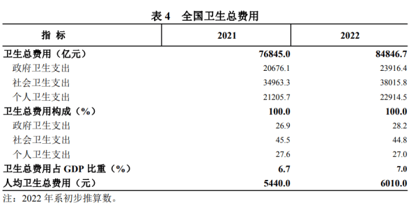 《2022 年我國衞生健康事業發展統計公報》:全國衞生總費用在持續上升,2022年全國衞生總費用達到8.5萬億