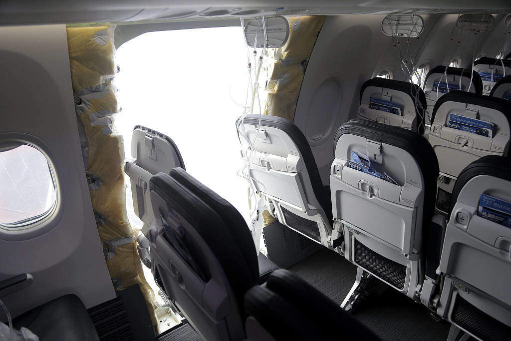 今年1月5日,美國阿拉斯加航空公司一架波音737 MAX 9型客機的門塞脱落。視覺中國