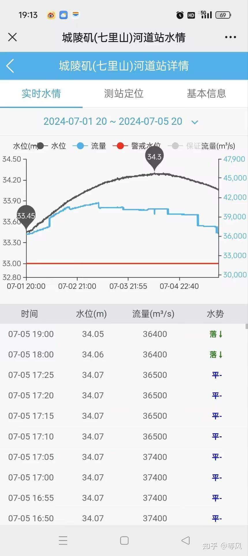 五點過潰壩以後,洞庭湖水位迅速下跌