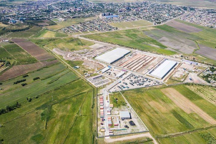 這是2019年5月21日在塔吉克斯坦丹加拉拍攝的中泰紡織廠(無人機照片)。新華社記者 張若玄 攝