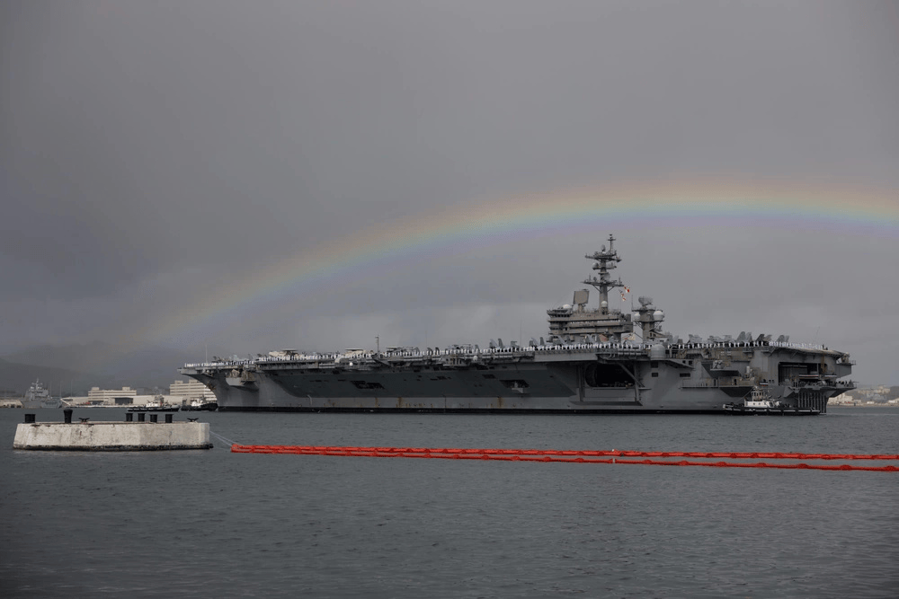 當下,美國另外一艘在西太平洋地區是"卡爾·文森”號(CVN-70)。“卡爾·文森”號航母去年10月中旬投入部署,但由於“魚鷹”機隊的故障問題在今年2月份提前結束部署並於3月份返回聖迭戈。6月13號,“卡爾·文森”號離開聖迭戈,前往夏威夷地區參加6月底開始的“環太平洋2024”多國海上聯合軍演。