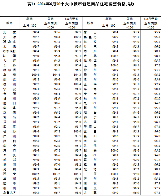 國家統計局:6月份各線城市商品住宅銷售價格環比降幅總體收窄