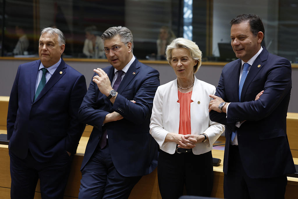 當地時間2024年6月17日,比利時布魯塞爾,歐盟國家領導人非正式會議舉行。左起:匈牙利總理歐爾班、克羅地亞總理普連科維奇、歐盟委員會主席馮德萊恩、葡萄牙總理蒙特內格羅視覺中國