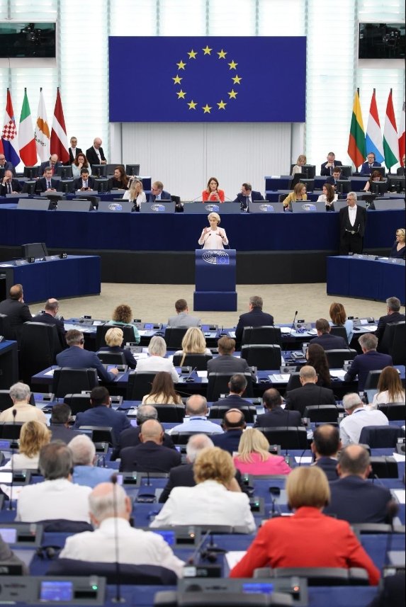 當地時間7月18日,馮德萊恩在歐洲議會發表講話。馮德萊恩X平台